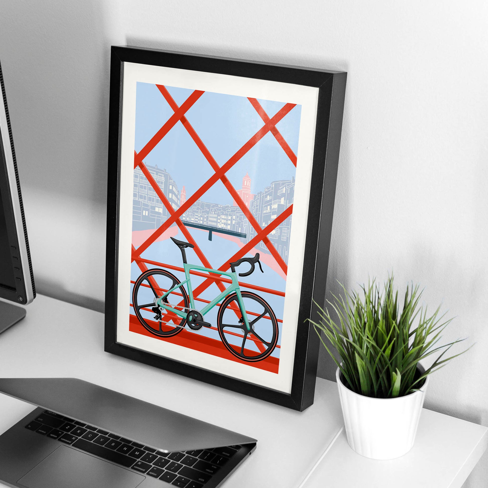 Girona, a més de ser una ciutat plena d'història i de curiositats, també és capital mundial de ciclisme. Si tu també ets un apassionat del ciclisme, aquest pòster és per a tu.