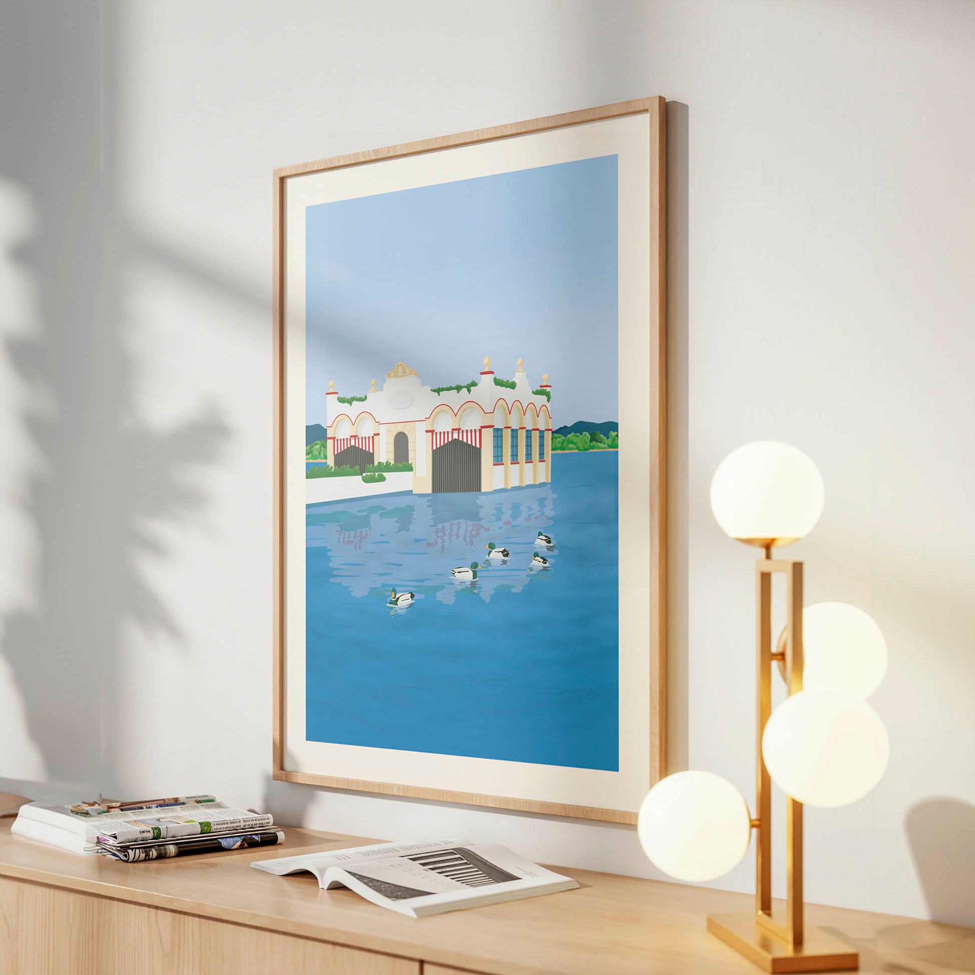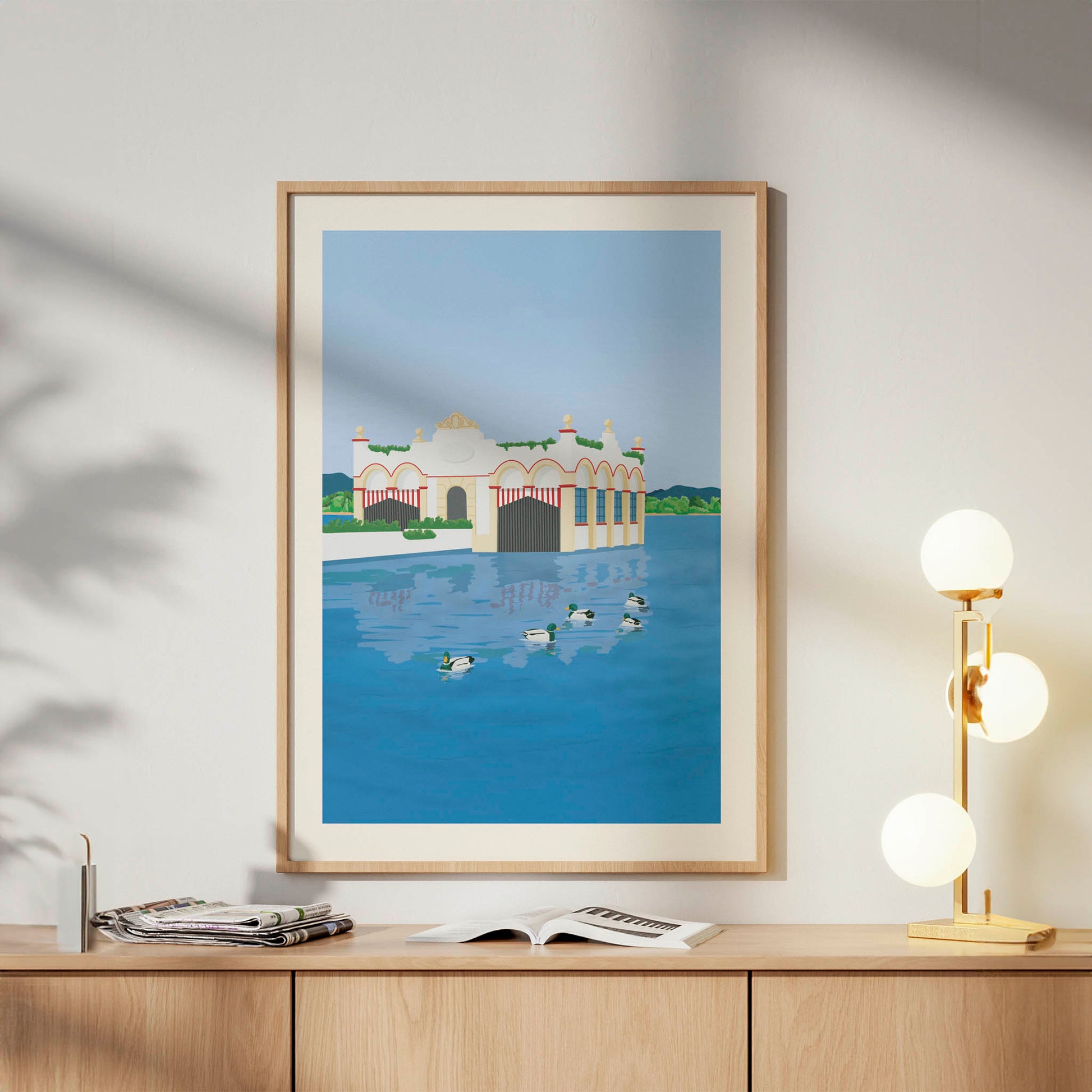 This illustration depicts one of the most iconic places in the Plan de l’Estany region. Lake Banyoles is ideal for strolling, relaxing, and enjoying nature at any time of year. Ideal for those who enjoy lakeside walks, open views, and the leisurely pace of this special spot.